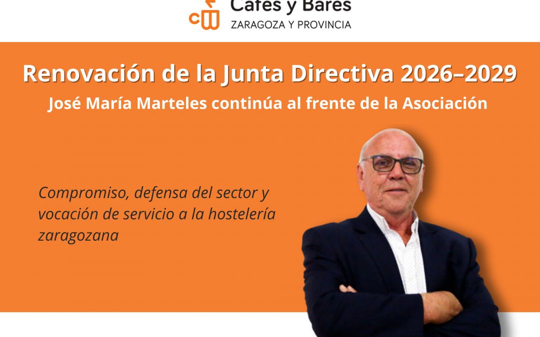 La Asociación de Cafés y Bares de Zaragoza y Provincia ha renovado su Junta Directiva para el periodo 2026–2029, manteniendo a José María Marteles como presidente de la entidad. Una renovación que llega en un momento especialmente significativo, coincidiendo con su reconocimiento como Zaragoza Ejemplar, una distinción que pone en valor su trayectoria y su compromiso con la ciudad y con el sector hostelero.