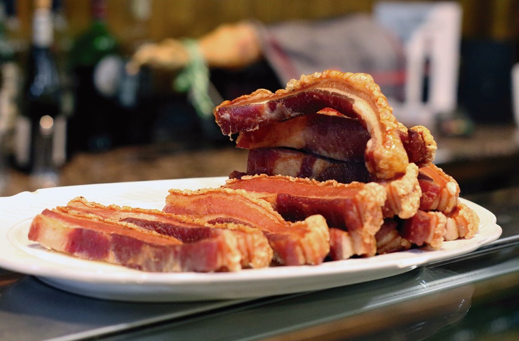 Casi al final de la calle Bruno Solano llegamos al Peirón de la Manduca, que lleva 22 años instalado en esa misma calle. “Somos uno de los bares más antiguos de la zona”, afirma orgulloso Abilio, dueño del establecimiento. Las raciones de puntillitas, ajos tiernos, jamón Ibérico, los peirones de solomillo o manducos de bacalao, tapa ganadora del Concurso de Tapas en el año 1997, son algunos de los platos que le han hecho destacar sobre los demás.